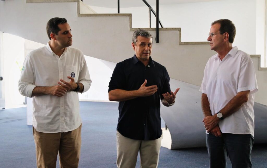 Vice-prefeito Eduardo Cavalieri, Presidente do JCB Raul Lima Neto e Prefeito do RJ Eduardo Paes.