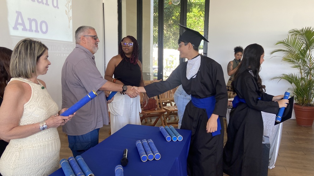 Durante o evento, os formandos também prestaram homenagens aos professores, compartilharam discursos emocionantes e registraram o momento com fotos. A celebração contou ainda com um mural especial de recados, onde alunos deixaram mensagens cheias de carinho, tornando a noite ainda mais significativa para todos os presentes.