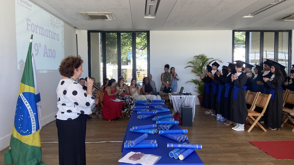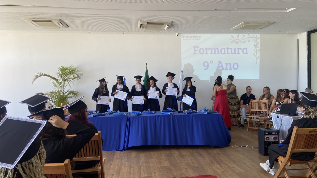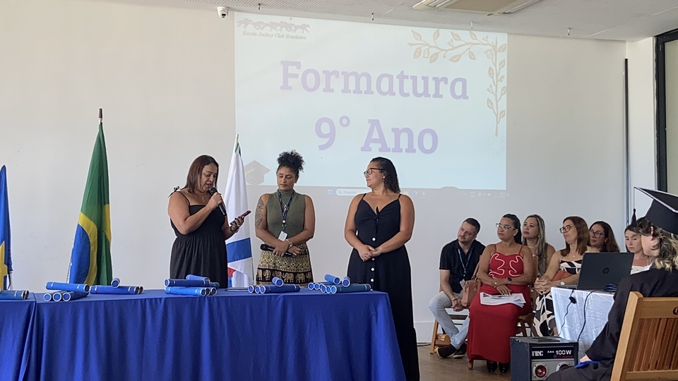 A formatura do 9º ano do Ensino Fundamental da Escola Jockey Club Brasileiro foi realizada no dia 22 de dezembro de 2025, no Salão da Tribuna B, em uma cerimônia marcada por emoção e celebração. Os alunos estiveram acompanhados de seus familiares e receberam homenagens especiais, em um momento que simbolizou o encerramento de uma importante etapa da vida escolar.