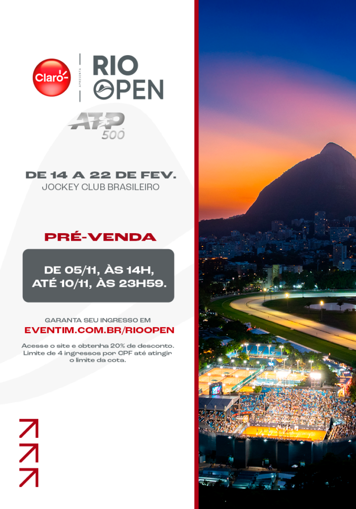 - Sócio JCB tem acesso gratuito ao complexo Rio Open e ganha 20% de desconto na compra de ingresso para a Quadra Central em eventim.com.br/rioopen (link disponível somente a partir da data da pré-venda)