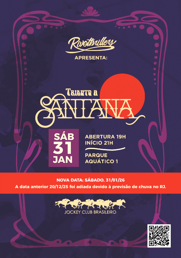 Por motivo de previsão de chuva neste final de semana, a noite de rock com Rivothrillers foi remarcada para sábado, 31/01/26. A banda toca um repertório de rock clássico e MPB e, desta vez, o tributo a Santana. Aproveite os ingressos disponíveis para venda.